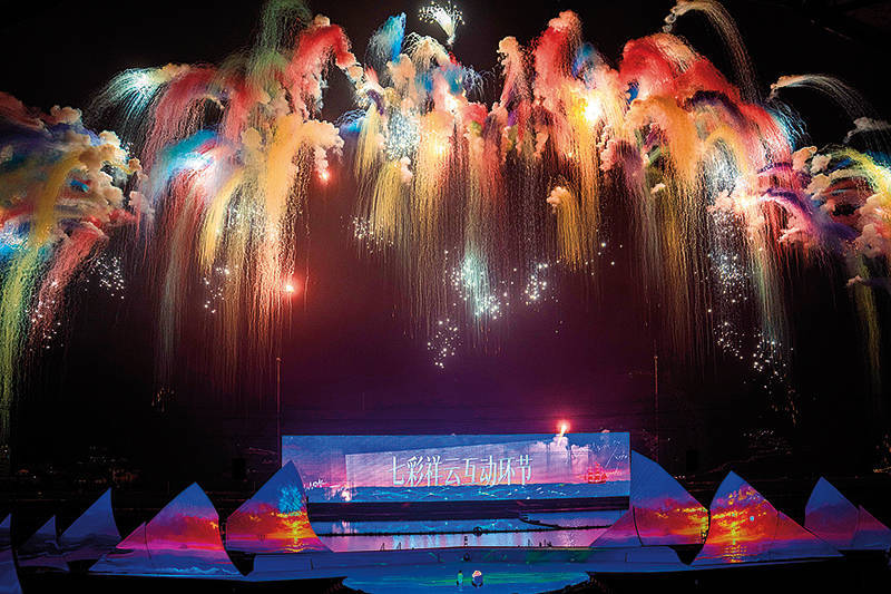 位于湖南省浏阳市天空剧院的“焰遇浏阳河 · 仲夏花火夜”创意焰火秀(2025 年7 月 12 日摄) 陈思汗摄 / 本刊内容再造:技术融合重塑核心吸引力