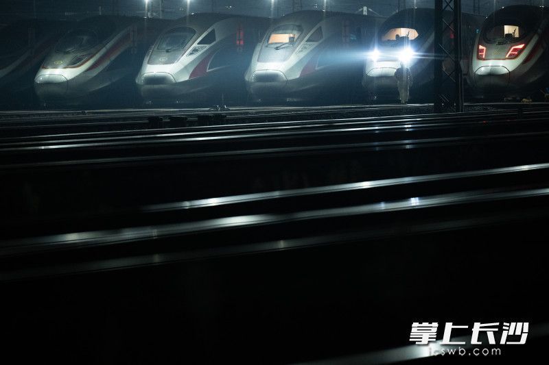 长沙晚报掌上长沙2月2日讯(全媒体记者 邹麟 黄启晴 通讯员 谢敏)2月1日晚,广铁集团长沙车辆段长沙动车运用所内,工作人员正在进行检车作业。为应对最长春节假期可能带来的运输高峰期持续时间增长。长沙车辆段长沙动车运用所从日常检修30组左右增加至50组每日。目前,长沙动车运用所已提前完成对125标准组动车的全面精检细修,借助4套360度检测系统、6套地沟机器人、6台库端洗车机等智能设备提升检修效率。同时抽调11名技术骨干支援一线检修班,并在长沙南站、怀化南站等关键枢纽安排技术骨干应急值守,确保运输安全顺畅,守护旅客平安舒适出行。